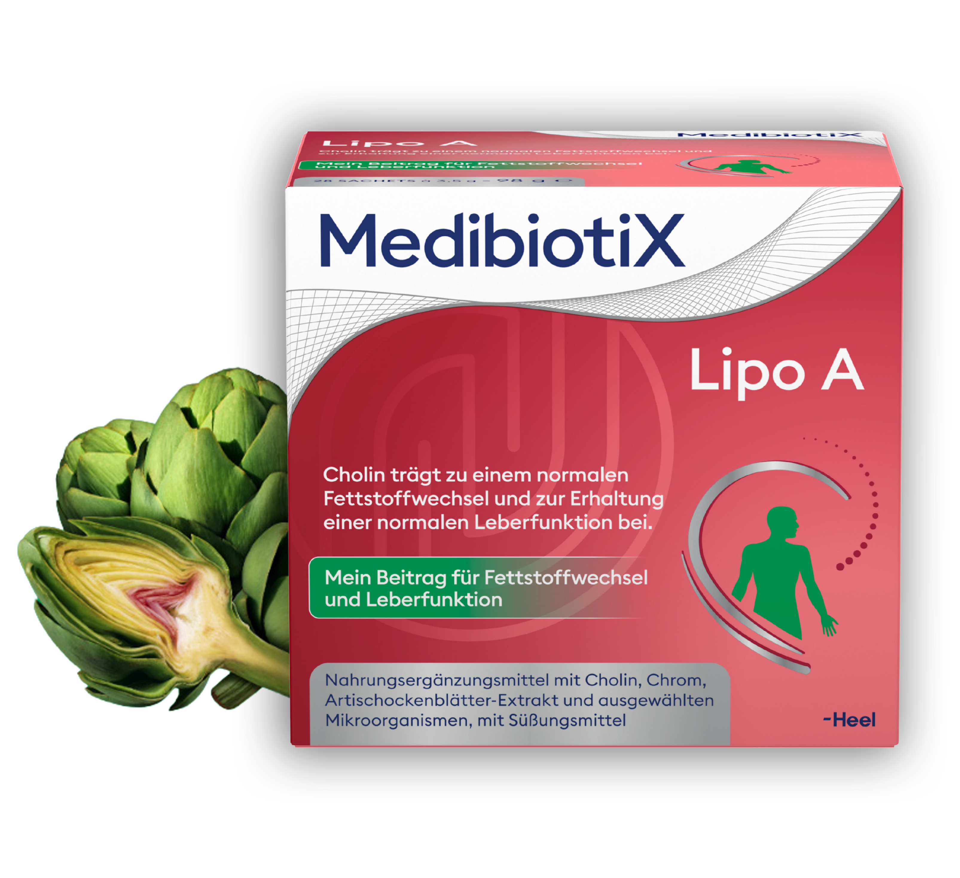 Mit Prä- und Probiotika bringt MedibiotiX Lipo A Deine Darmflora wieder in Balance. Die Bitterstoffe aus dem Artischockenblätter-Extrakt unterstützen die Gallensaftproduktion und können so helfen, die Fettverdauung zu erleichtern. Cholin, Chrom und Niacin tragen zudem dazu bei, dass der Umbau der Nährstoffe in Energie rundläuft. Zur täglichen Unterstützung von Verdauung, Stoffwechsel und Nährstoffaufnahme. Denn: Gute Verdauung sorgt für ein leichtes Gefühl!