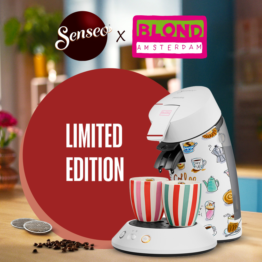 Senseo® und die holländische Lifestyle-Marke Blond Amsterdam, bekannt für ihre fröhlichen und einzigartigen Illustrationen, haben sich zusammengetan und eine exklusive Kollektion in limitierter Auflage kreiert. Das Ergebnis: handgezeichnete, kreative, farbenfrohe Designs (nicht nur) für die neue Senseo® Kaffeemaschine, die ganz speziell für echte Kaffeeliebhaber konzipiert wurde. Von mild bis stark - sie bereitet jeden Kaffee einfach mit nur einem Knopfdruck zu. Dank ihrer patentierten Crema-Plus-Technologie sorgt sie für eine noch feinporigere Crema bei jeder Tasse und entfaltet mit der Kaffee-Boost-Technologie das volle Aroma aus jedem Kaffeepad. Mit ihrem farbenfrohen Design bringt die Limited Edition Senseo® x Blond Amsterdam gute Laune in die Küche – und zaubert bei jeder Tasse Kaffee ein kleines Lächeln ins Gesicht. 😊